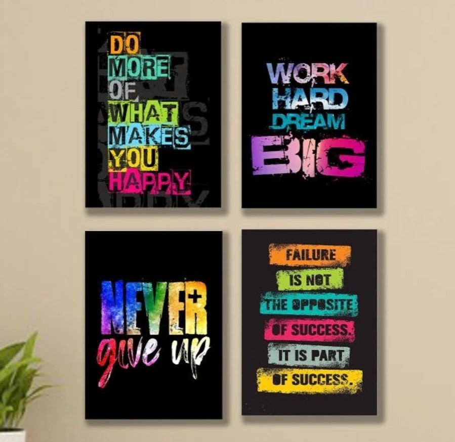 Set Of 4 Motivational Sticky Canvas Frames For Wall Decor
